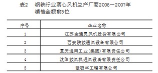 離心風(fēng)機(jī)產(chǎn)品主要應(yīng)用于鋼鐵、電力、水泥、石化等工業(yè)領(lǐng)域,其中在鋼鐵、電力、水泥等行業(yè)已大部分實現(xiàn)國產(chǎn)化,石化行業(yè)熱電廠離心風(fēng)機(jī)大部分依靠進(jìn)口,目前已逐步實現(xiàn)進(jìn)口替代。根據(jù)風(fēng)機(jī)協(xié)會統(tǒng)計,各主要行業(yè)排序見表2~表6。