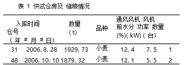1. 1供試倉(cāng)房及儲(chǔ)糧情況