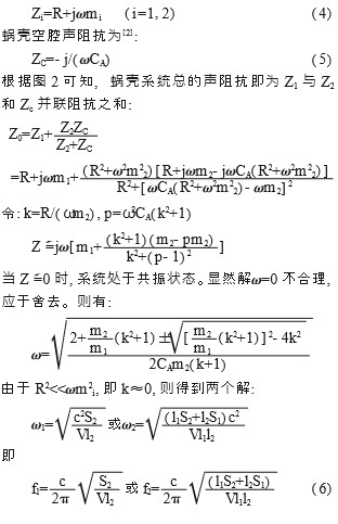 ( 2) 短管體積遠(yuǎn)小于腔體體積, 即 Sli<<V( i=1, 2) 。