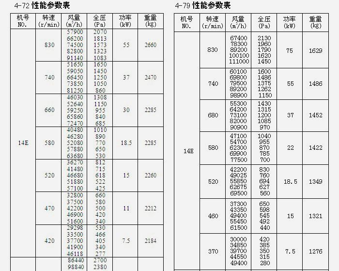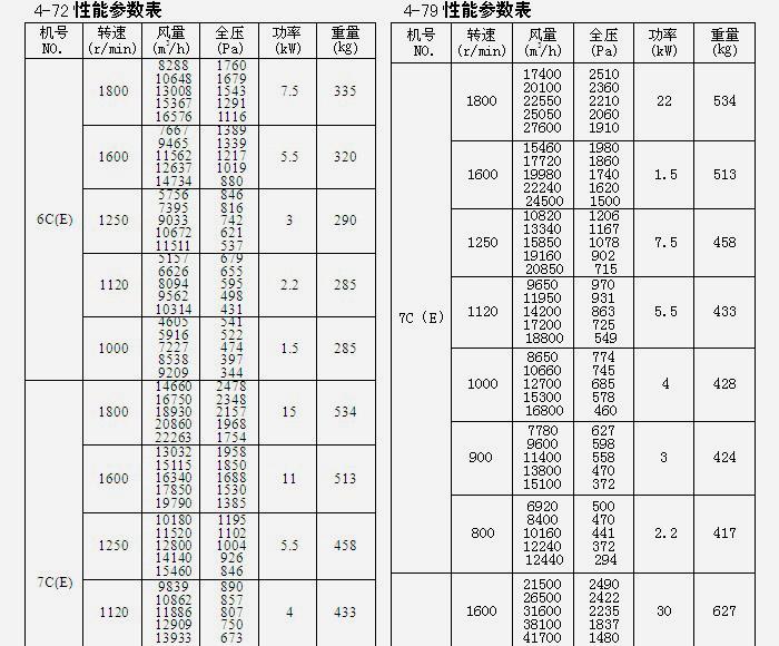 4-72、4-79離心風機作一般通風換氣用,輸送空氣或其它不含易燃易爆、無腐蝕性的氣體,氣體內(nèi)無粘性物質(zhì),所含的塵土及硬質(zhì)顆粒物不大于150 mg/m3,溫度不超過80℃。