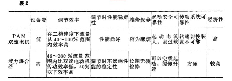 選用 P A M 雙 速電機(jī)傳動和液 力藕 合器傳 動是 目前火 電廠鍋 爐 風(fēng)機(jī) 比較理 想的調(diào) 速裝置 。 表 2 是雙速 電機(jī)和液力藕合器兩 種調(diào)節(jié)方式的 比較。 由于風(fēng)機(jī) 的節(jié)能工作還 涉及到管理 、 風(fēng)機(jī) 本身的效率 、 設(shè)備選 型 、 合理 運(yùn)行和新技術(shù)的開發(fā)應(yīng)用等多方面的問題 , 所 以 在實(shí)際選用 時要進(jìn) 行綜 合分析比較。 當(dāng)然, 不 外乎兩個主要方面即經(jīng)濟(jì)性和 可 靠性 , 這對大容量機(jī)組的重 要性 更 為 突 出。 譬 如 , 電站 鍋爐風(fēng)機(jī)的運(yùn)行方式屬于大流量變 化型 如圖 4 所示。