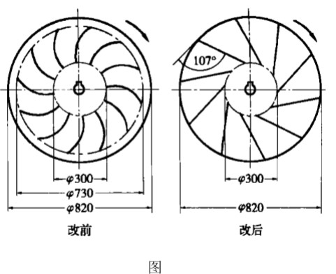 將改造 好的葉輪安 裝后, 運(yùn)轉(zhuǎn) 平穩(wěn), 無(wú)尖 銳噪聲。連 續(xù)運(yùn)行 6個(gè) 月軸承仍然 完好, 壽命 明 顯提 高; 風(fēng) 機(jī) 的 風(fēng) 量、壓 力滿(mǎn) 足 生 產(chǎn) 要 求, 幾 乎沒(méi) 有下降( 未準(zhǔn)確測(cè)量); 運(yùn)行時(shí)單相電流降為 60A, 節(jié)能效果明 顯。