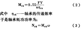 對于離心葉輪, 為節(jié)省超速功耗 , 通常用 檔板封隔進(jìn) 口, 這時運轉(zhuǎn)耗功由下列四部分組 成:1 . 齒輪增速器耗功 由于齒輪嚙合和 軸承副摩擦所耗的 功, 可 用總耗功的傳遞效率 刀來表示〔” 。 2 . 軸承箱軸承 副雇擦耗功 由于 軸承和 軸之 間的摩擦損失 引 起 的 耗 功 , 它 與潤滑油性質(zhì)及溫度有關(guān), 據(jù) 文獻(xiàn)[ 2 〕 介紹 , 軸承副摩擦力 F 決定于轉(zhuǎn)子重量 G 與摩 擦系數(shù) f 。 而 f 與油溫、 油質(zhì)及工件的材質(zhì) 、 工藝有關(guān), 可在手冊中選取 。 F 二 fG ( 1 ) 而摩擦力矩M . 、 與軸的半 徑有關(guān), 或者說與軸 的線速度 v 和轉(zhuǎn)速 n 有關(guān)。 考慮到前后兩端軸 頸直徑不 一, 故線 速度 記 為 v : 和v Z , 按式 (2 ) 近似 計 算 M . 、 或 者 取 F/ 2 對 v , 和 v : 分別計算均可。