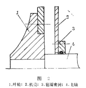 圖 l 、 2 示出了我 國目前離心風(fēng)機(jī)上采用 的軸端 密封的主 要結(jié)構(gòu) , 其中前者主要用于 4 一72 等系列的 中、 低壓 離心風(fēng)機(jī) , 后者用于 9 一19 、 9 一26 等系列的高 壓 離 心 風(fēng)機(jī)。 實(shí)際 上, 中、 低壓風(fēng)機(jī)完全 依靠間隙 來密封, 氣體 直接通 過軸與機(jī)殼的 間隙向大氣中泄漏, 為了 減少泄 漏量, 就需要盡量 減小 間隙。 高壓風(fēng) 機(jī) 氣體密 封壓差 高達(dá) 1 6 kPa 左右, 單 靠間隙密 封已不能 滿足要 求, 故采 用了氈 圈密封。 這 種 密封在安裝時(shí)容 易損壞 , 運(yùn) 轉(zhuǎn)時(shí) 易磨損, 密封 效果很差 。 上述 兩種密 封只能減少但不能杜絕氣體泄 漏, 要 完全避免風(fēng)機(jī)輸送 的有毒氣休、 易然 、 易爆氣體 或稀 有氣體泄 漏到大氣 中, 就需要 采 用新型 的密封。 圖 3 為 Fw 系列風(fēng) 機(jī)上采 用的 新 型 軸端 密封結(jié)構(gòu) 示意 圖。 它 由以下 3 種 結(jié)構(gòu)的密封組 成。