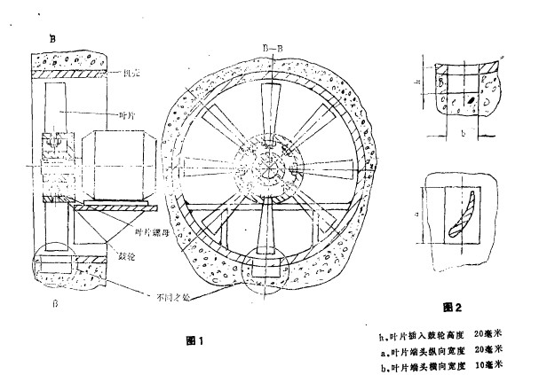 更換葉片時, 只需將要卸的 葉片轉(zhuǎn)到槽口 處 , 拆 下蓋板 , 擰松葉片 螺母 , 便可將葉片松 出 , 換上新葉片, 過去要幾個維修工花一 兩夭, 現(xiàn)在一個維修工幾個小時就行 了。 此外, 這種 槽 口對通風性能無任何影響。