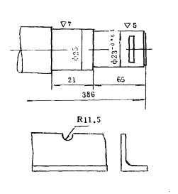 離心風機的 葉片屬 于易損零 件, 需 常 更 換, 過去換一葉片 時, 必須將鼓輪 一起拆下來 后, 才能將葉片拆下 , 換上新 葉片, 再將鼓輪 裝上去, 如圖 1 所示 , 這樣 , 費工費時。 為解 決此 問題, 我們 在機殼 上開 了 一個槽 口 并另加 一 個蓋板用 螺釘 固定在槽 口處 , 槽 口 尺寸如 圖 2 所 示 。