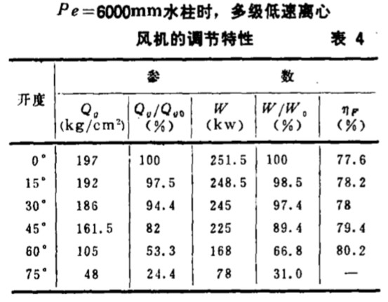 氣量可減 小到。“ 開 度的60 % 以 下, 能 耗可 一節(jié) 約。。 開度時的30 % 以上 , 單機節(jié)能效果十分 顯著。 杭州制氧機 廠生 產(chǎn)的單級 高速離心風(fēng)機 除 了可帶進 口導(dǎo)葉片 、 用以 手動調(diào)節(jié)之外 , 還 設(shè)計有。~ 10 m A D C 標(biāo)準(zhǔn) 信號 接口 , 它可 以接受控制 系統(tǒng)的信號, 調(diào)節(jié)導(dǎo) 葉片開度的 大小 , 從 而使離心 風(fēng) 機成 為控制 系統(tǒng)的執(zhí)行 機構(gòu) , 自動調(diào)節(jié)風(fēng) 量。 三 、 多級低速離心風(fēng)機的風(fēng)t 調(diào)節(jié)特性 及其節(jié)能效果 多級低 速離心風(fēng) 機的風(fēng) 量調(diào)節(jié)采用調(diào)節(jié) 進 口蝶閥的方法實現(xiàn) , 圖3~ 5 畫 出 了多級低 速離心 風(fēng)機的風(fēng)量~ 出 口壓 力 ; 風(fēng) 量~ 電耗 ; 風(fēng) 量與風(fēng) 機效率的 特性 曲線。 從圖 3~ 5 的基本特性曲線簇可 以看到, 多級低速離心 風(fēng)機 風(fēng) 量 、 電 耗 、 風(fēng)機 及電機 效 率隨蝶閥 開度變化。 多級低 速離心風(fēng) 機的效 率曲線變化很小 , 風(fēng) 量 和 電耗二 條曲線有很 好的跟 隨特性 , 節(jié)能 效 果同樣十 分顯著 。 由圖6 可以列出蝶閥 不同 開度下, 氣量 、 電耗 、 效 率曲線, 其對 應(yīng)值數(shù)據(jù)見 表4 。