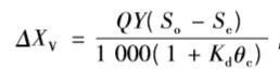 式中: ΔXV 為排出生物反應(yīng)池系統(tǒng)的微生物量, kg/d; Q 為生物反應(yīng)池的進(jìn)水流量, m3 /d; So 為生物 反應(yīng)池的進(jìn)水 BOD5,mg/L; Y 為污泥產(chǎn)率系數(shù); Kd 為異養(yǎng)菌內(nèi)源衰減系數(shù),取0. 08 d-1; Se 為生物反應(yīng) 池的出水 BOD5,mg/L; θc 為反應(yīng)池設(shè)計(jì)泥齡,