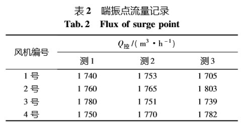 表 2 中平均流量為 1 757. 3 m3 /h. 考慮到運(yùn)行 時的流量波動,為保證安全,計(jì)算喘振控制點(diǎn)流 量[13]為 Q控 =1 757. 3 ×( 1 +8%) = 1 897 m³ /h,即喘振控制點(diǎn)流量為 1 900 m3 /h. 在風(fēng)機(jī)喘振報(bào)警 裝置中重新設(shè)置喘振控制點(diǎn)流量為1 900 m3 /h.